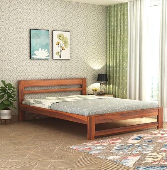 SHEESHAM Honey Brown Wooden Bed Furniture for Bedroom Living Room, Home & Hostel Rooms COD Available