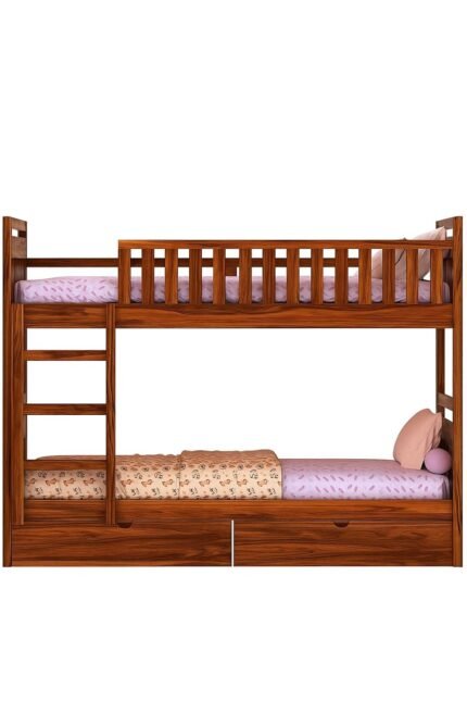 Woodmart furniture Solid Sheesham Wood Kubo Bunk Bed Twin Over Bed with Ladder Wooden Bunk Bed with 2 Drawer Storage for Bedroom Living Room Home (Natural Finish)