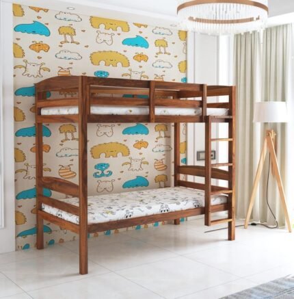 Woodmart furniture Sheesham Wood Katy Bunk Bed Twin Over Bed with Ladder Wooden Bunk Bed Without Storage for Bedroom Living Room Home – (Natural Finish)