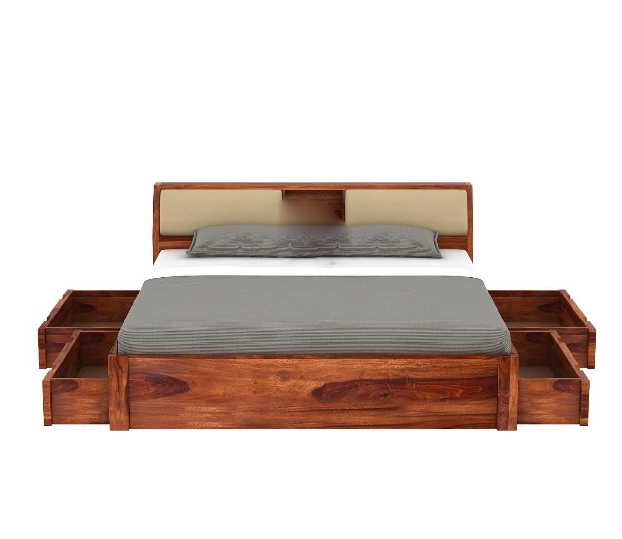 Wooden Sheesham Wood Bed with 4 Drawer Storage, Solid Wooden Cot Bed Furniture, Elegant & Functional Bedroom & Living Room Home Palang