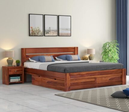 Woodmart furniture Wooden Bed with Storage | Double Bed Cot Bed with Drawer Storage for Bedroom & Hotel | Sheesham Wood | COD available